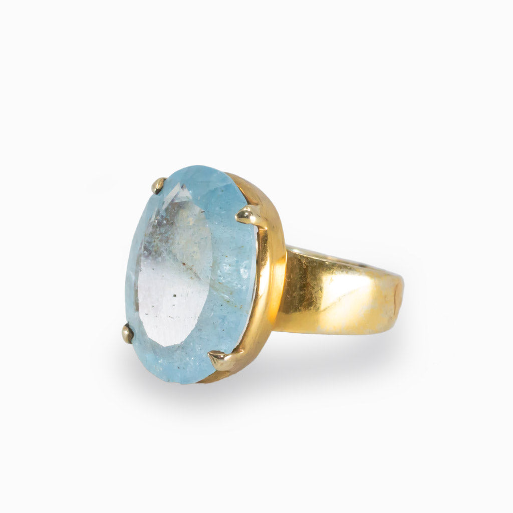 Reminiscent of the ocean and the icy blue tones of the sky, this sparkling blue beauty is known for its calming, soothing, and cleansing properties, much like the soothing spirit where its name originated from, which translates to “water of the sea”. Known as the ‘stone of courage, this gem enhances one's ability to “always be prepared”. This Aquamarine ring stimulates, activates, and cleanses the throat chakra, inspiring truth, trust, and letting go. This understated bling will give you the courage to speak your truth and own who you are in any situation life throws at you.