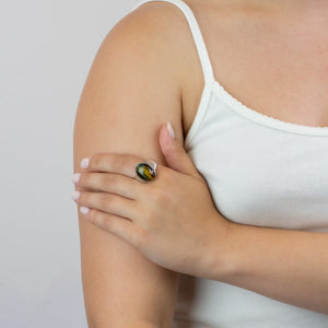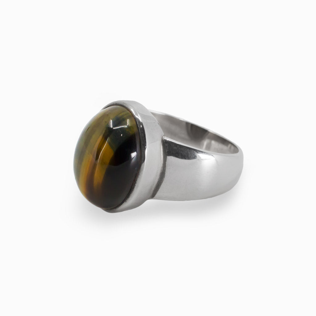 You will love the way light reflects beautifully from the deep navy and golden-yellow silky fibers of our Hawks Eye rings. This ring with a cabochon polish in a bed of 925 sterling silver can be dressed up or down, adding a playful twist on your daily look, or pairing it with your nighttime glam. You can wear this versatile gemstone from day to night. Hawks Eye helps stimulate wealth and optimism whilst eliminating your ‘blues’.