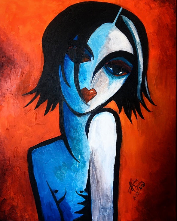 "LADY HAS THE BLUES" acrylic on canvas 16 x 19 inch $700