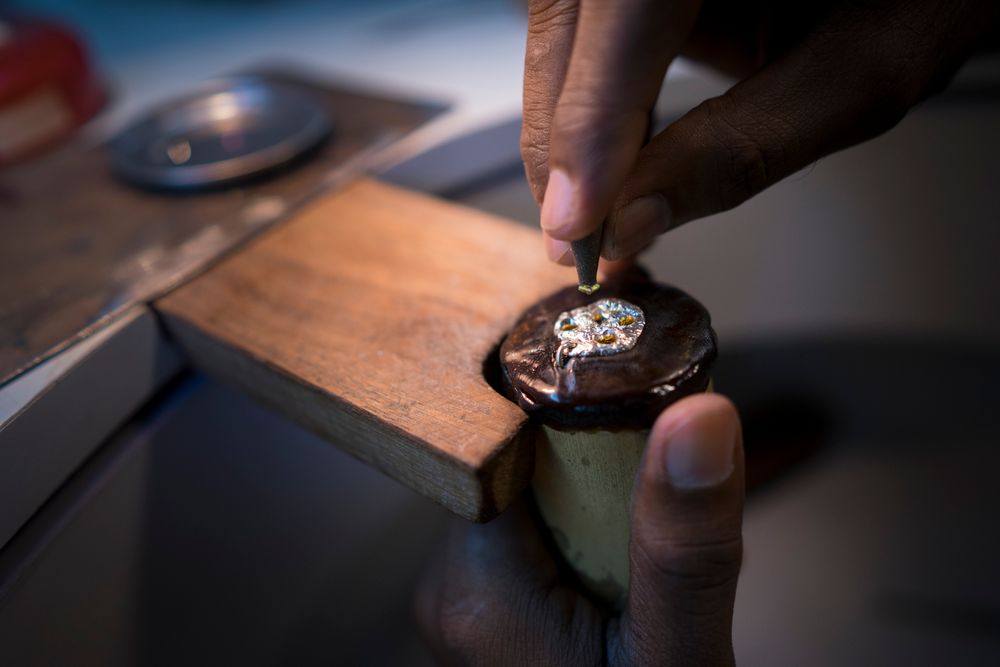 The art of stone-setting is a final process. Gems are added to the precious metals, creating the 'jewel in the crown'.