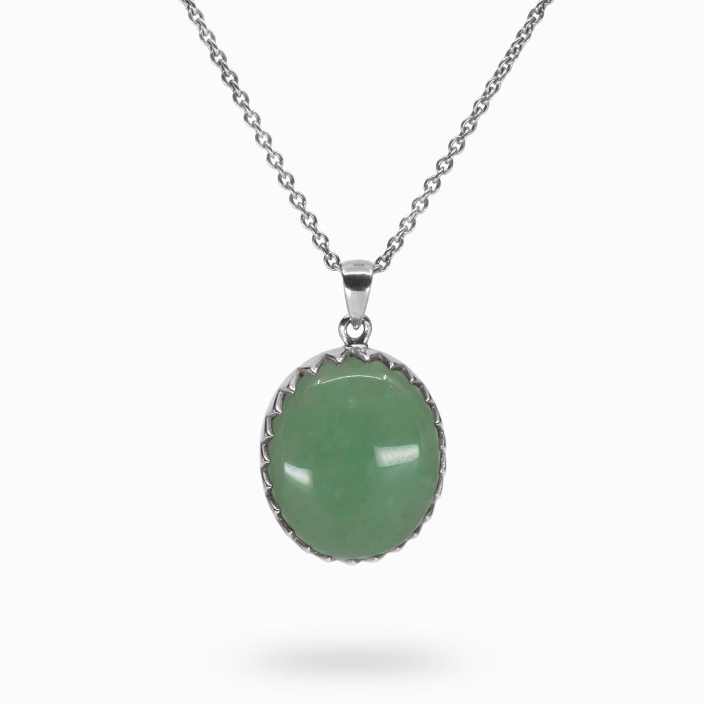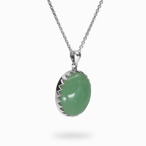 Keep your heart safe with this appealing oval cabochon Aventurine necklace. This stone, which is beautiful in any hue, may help cleanse your heart chakra while also protecting you from individuals who do not have good intentions. Aventurine is also regarded as a motivational stone since it may help with creativity and decisiveness.