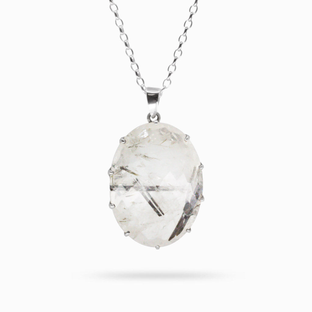 This elegant Quartz gemstone features clear, crisp clarity with bold, striking bands of Black Tourmaline running through it. A monochrome dream, this versatile gem complements everything from extravagant to minimalist styles. Combining the powerful properties of Tourmaline and Quartz, wearing this stone helps eliminate destructive patterns in both nature and life. Let it provide you with strength, protection, and a sense of balance.