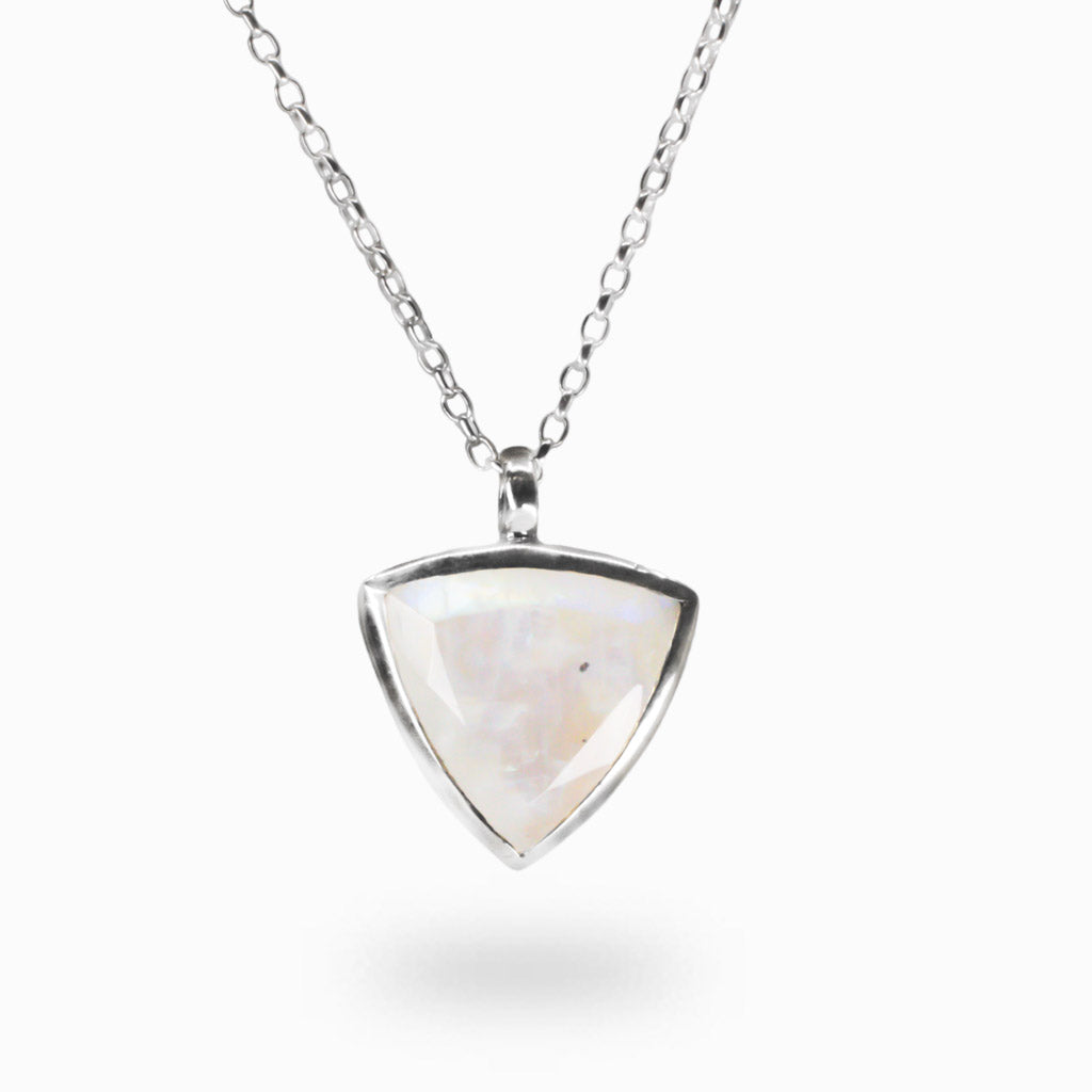 This magnificent faceted Rainbow Moonstone necklace gleams with a stunning assortment of blue tones that can be appreciated from any angle. This versatile gemstone will complement any ensemble. Rainbow Moonstone is often known as the traveler's stone, symbolizing fresh starts. Rainbows are encouraged to appear in one's life by wearing this Rainbow moonstone faceted necklace. The multi-colored light energizes each chakra as the healing white light is brought in.