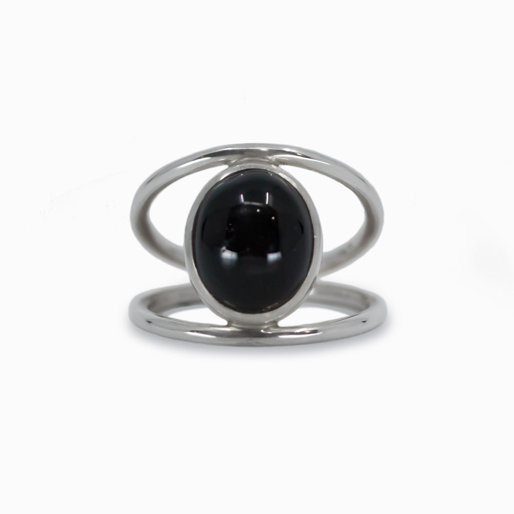 Cabochon Oval Black Star Diopside ring