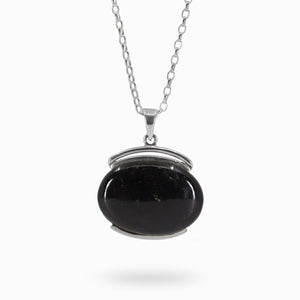 The Black Tourmaline gemstone from Australia is always a great look to any outfit. The smooth silky surface of this oval cabochon polished necklace in 925 sterling silver has a velvety blackness, and it is cut and polished from large crystal masses in the earth. This Black Tourmaline necklace will not only add to the beauty of your collection, but it will also protect you from negative energy.