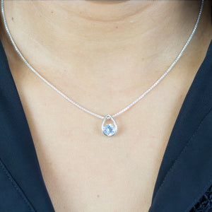You'll see everything as equally essential when you wear this round Blue Topaz necklace. Blue topaz is a beautiful blue stone that will go well with any jewelry. Wear this faceted topaz pendant with icy blue tones to celebrate your individuality; it acts to replace negativity with love and joy.