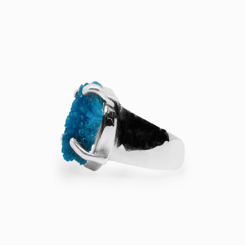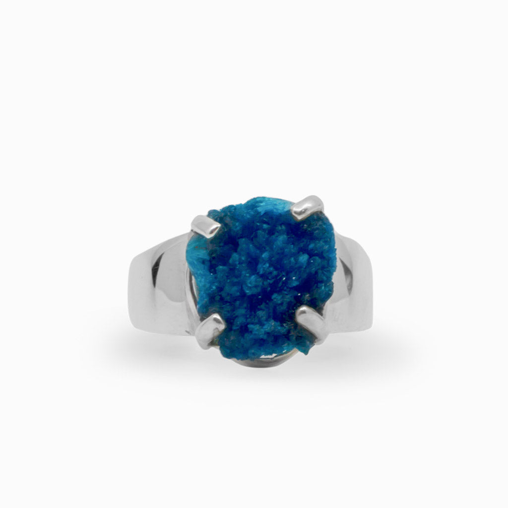 With its sparkling, electrifying hue, this deep blue beauty is a dream to wear. This stunning crystal is perfect for any occasion! The color really pops against anything. Wearing this gem will allow you to use your intuition and activate channeling abilities with Blue Ray energetic vibrations. This Cavansite ring is excellent for psychic protection and healing. It removes and releases negative energy patterns bringing optimism and inspiration to your life.