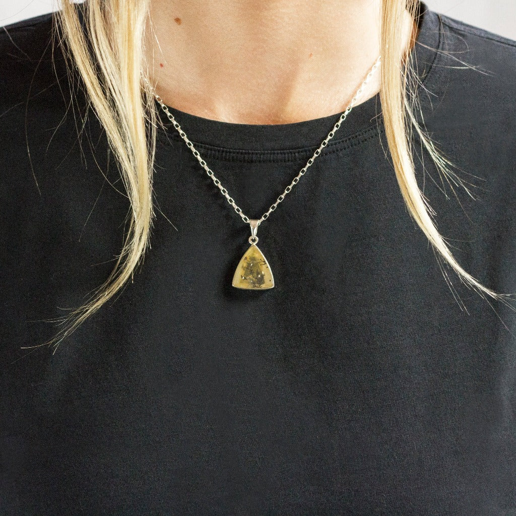 Clear Dendritic Quartz gemstone with fern-like Dendritic inclusions gives it a lovely appearance. This triangle bezel cabochon Dendritic quartz necklace can go with any outfit and any season. This Dendritic Quartz necklace can help you gain mental clarity and a stronger sense of self-connection. Dendritic Quartz is said to promote a closer relationship with nature and a sense of belonging to Mother Earth.