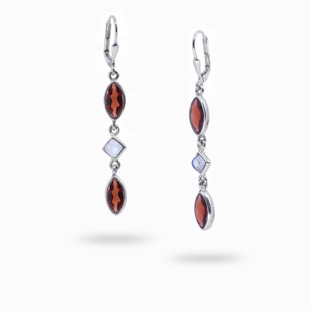 Garnet and Rainbow Moonstone Drop Earrings
