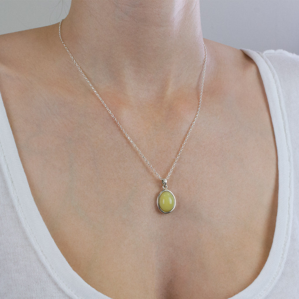Honey Opal gemstone and its sunny, yellow disposition are ideal for working with the Solar Plexus and Heart Chakra. Opal is known to be the "stone of happy dreams and changes" as it can help to express inner feelings of happiness and confidence. This Honey Opal Necklace strengthens awareness and intuition. It has been used to help define and shift attitudes and beliefs that are self-limiting. This stone looks great paired with light colors and denim.