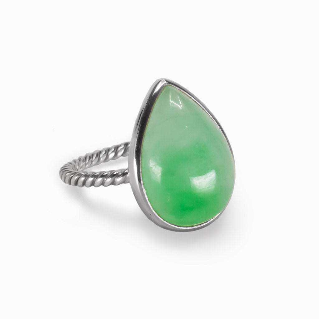The ever-desired vivid green of Jadeite is unmistakable. Wear this beautiful marbled green stone and watch yourself glow! This Jadeite ring is known as the “stone of magic” in Mayan and Aztec cultures, Jadeite unites and improves dysfunctional relationships while offering protection and good fortune.