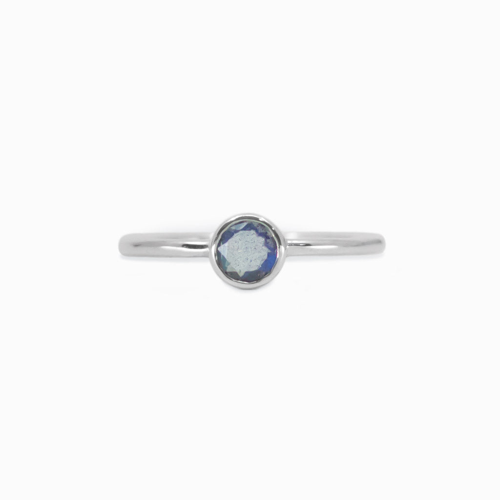 With an electric blue and sometimes multi-colored sheen, this translucent grey gemstone ring will demand attention! The stone of vitality and originality, this Labradorite ring will allow you to be yourself.