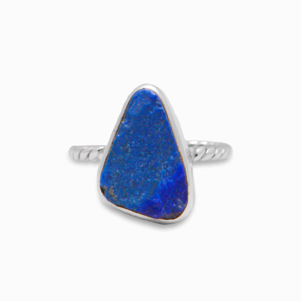 Lapis Lazuli has long been prized for its electric blue color with sparkles of golden pyrite. Wear this Lapis Lazuli ring to increase your awareness and defend yourself.