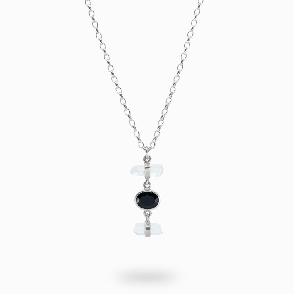 This Black faceted oval-shaped Onyx necklace is the perfect piece for everyday wear. Set in a sterling silver bezel, this gemstone enhances self-control, stimulates wise decision-making, and encourages happiness and good fortune. Allow this Onyx crystal necklace to help you become the master of your own future.