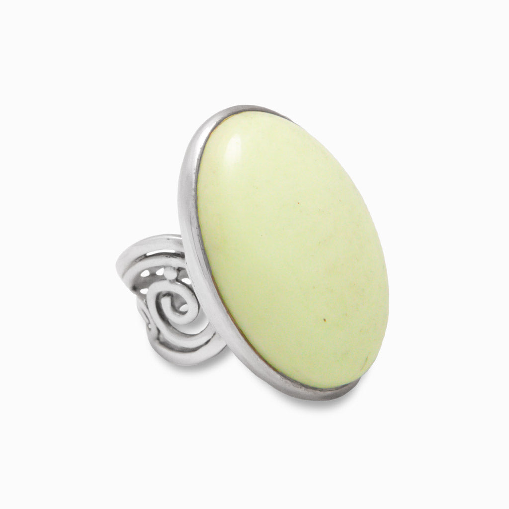 A beautiful luminous lemon yellow and lime green, Lemon Chrysoprase is loved for its bright color.This understated gemstone will add a subtle pop of color to your everyday look. It is a versatile stone that can be worn with bright hues to dark tones. This is a feel-good stone, protecting the wearer from negative thoughts and nightmares, while stimulating creativity, courage, and self-belief.