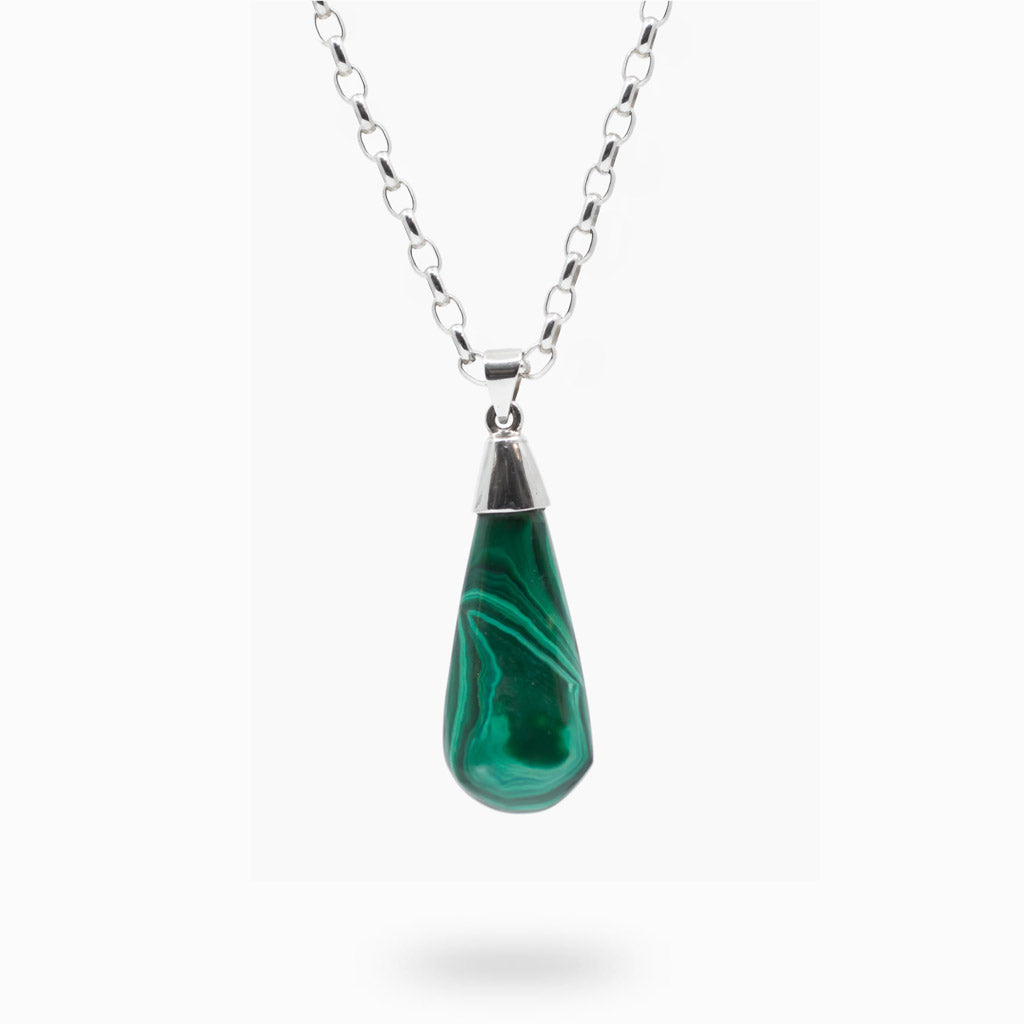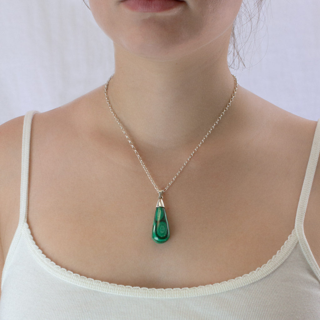 This unique Malachite necklace will make people around you green with envy with its banded patterns and distinct, gorgeous hue. Pair with on-trend clothing or simply wear as a statement necklace to give this long-loved gemstone a fresh modern spin. Allow Malachite, often known as the "stone of transformation," to support you in changing conditions, releasing unpleasant experiences, and allowing you to continue on your path of change and achieve your desired goals
