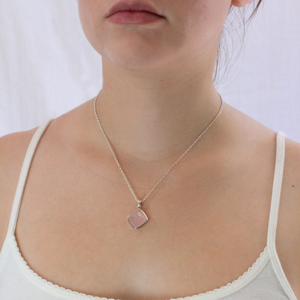 This Morganite necklace has delicate pastel tints that go with a broad variety of colors, making it a great everyday crystal necklace. Wearing this rose stone can help to open, purify, and stimulate the heart chakra, resulting in the growth of love in your life. Allow this pink crystal beauty to motivate you to think and act lovingly, as well as patience and wonder for life.