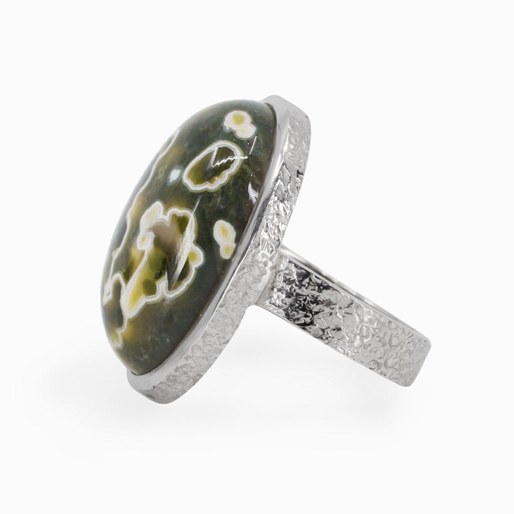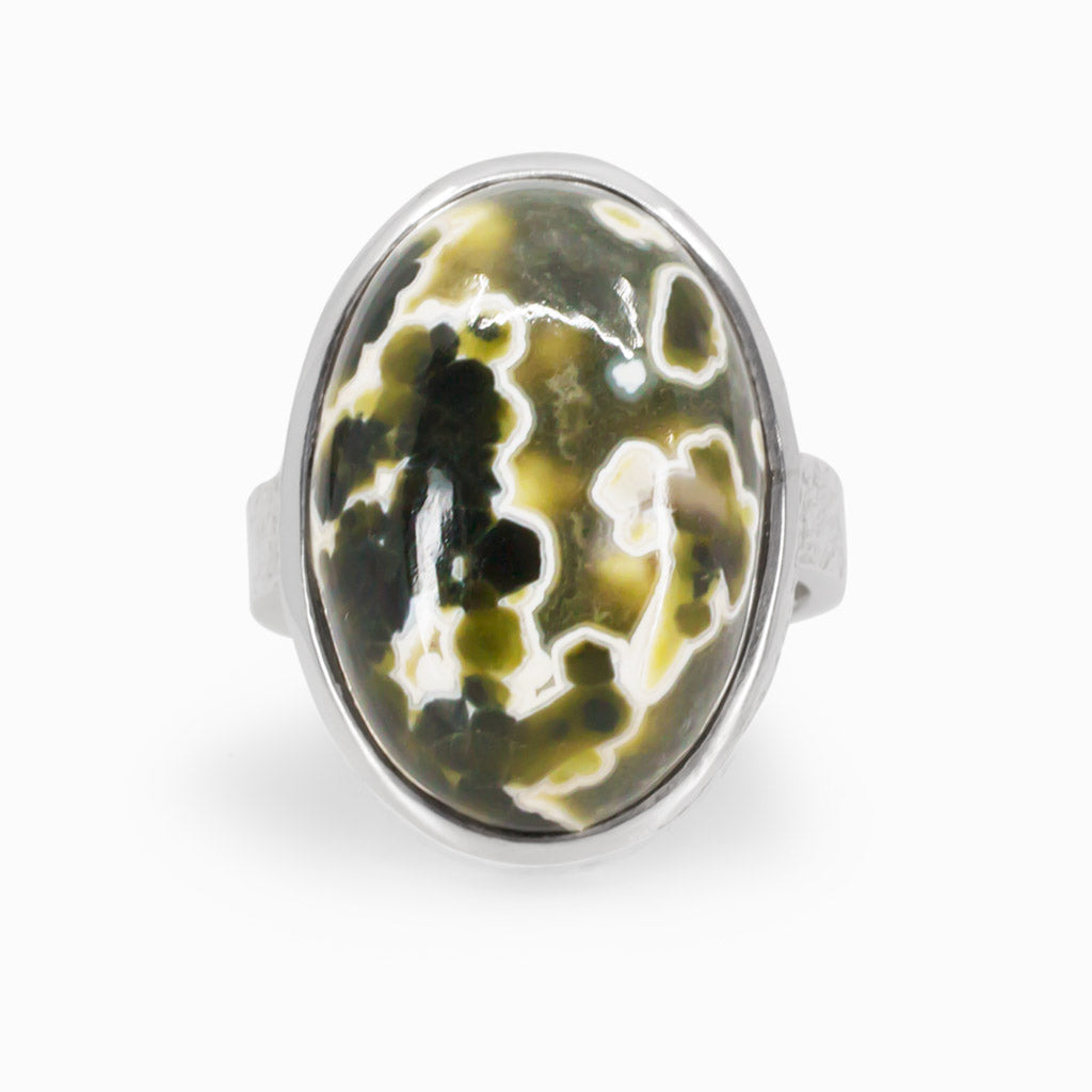 This lustrous agate gemstone brings refreshing energy, much like that of the ocean. Not only will wearing this unique spotted Agate ring beauty allow you to express yourself in a fun, creative way, but it is known to elevate one’s way of thinking, to enhance one's decision making and allowing its wearer to release anything that is not necessary or enjoyable in one's life.