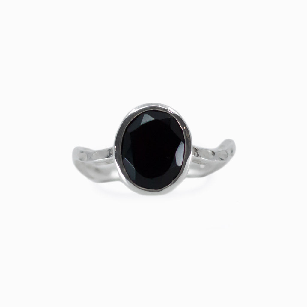 Onyx is a black beauty of a diamond that pairs well with just about anything! Not only is this Onyx ring in 925 textured sterling silver ideal gemstone for dressing up or down depending on the occasion, but it is also said to improve self-control, inspire sensible decision-making, and bring happiness and good fortune. Wearing this sleek black stone ring can assist you in becoming the master of your own destiny.