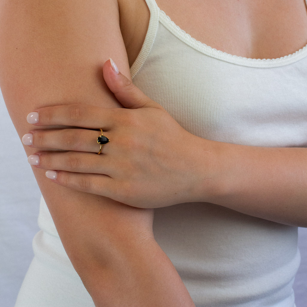 This Onyx gemstone goes with anything and everything! Not only is the perfect stone to dress up or down depending on the occasion but it is also known to enhance one's self-control, stimulate wise decision-making, and encourage happiness and good fortune. Wearing this Onyx ring helps one to become the master of one's own future.