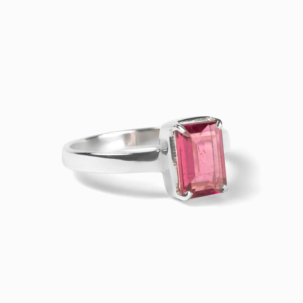 This joyous, yet elegant pink Tourmaline gemstone can be worn day or night. Pair with bright hues and shine in the sunlight or wear as a statement under the moonlight. Pink Tourmaline brings beautiful loving energy that invites happiness and peace to its wearer. Bringing you creativity and joy for the enthusiasm for life by releasing destructive tendencies, and assisting you in the attainment of peace and understanding, trust and awareness, and love. Allow this Tourmaline ring to guide you through changes of love and growth bringing you toward enlightenment.