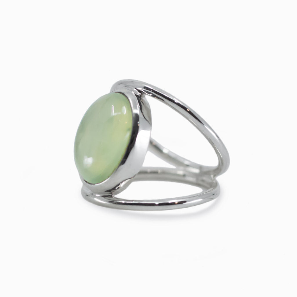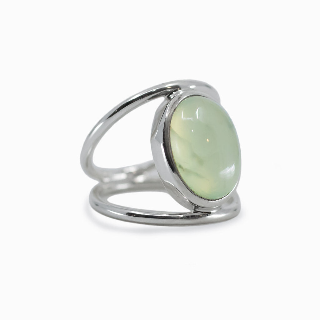 The vibrant and bold tones of this yellow-green oval cabochon Prehnite ring are citrus bliss! Not only the perfect addition to any spring or summer outfit but wearing this Prehnite stone ring can enhance the protective fields that surround you. It will bring a calmness and an “inner” knowing when to prepare in advance for situations in life.