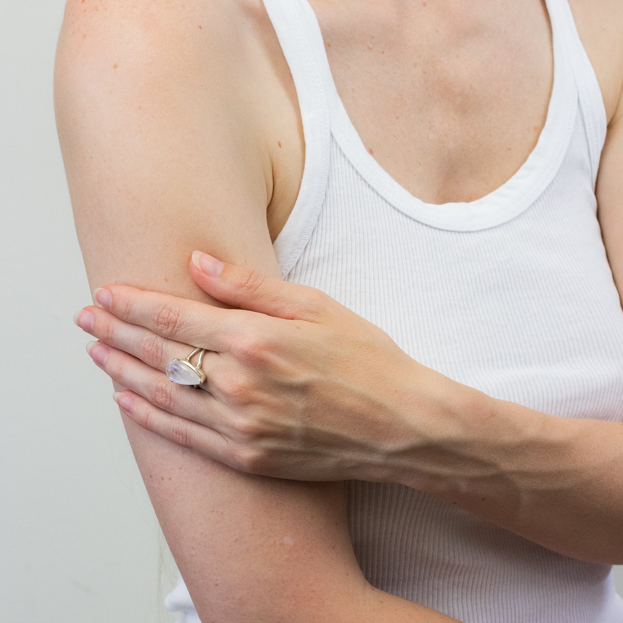 RAINBOW MOONSTONE TEAR RING ON MODEL