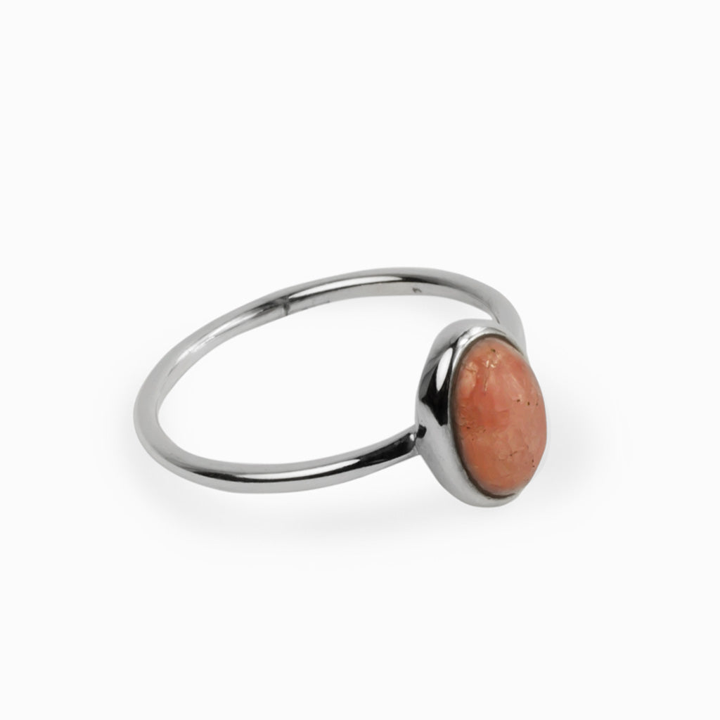 Orange Pink Oval Rhodochrosite Ring Made in Earth