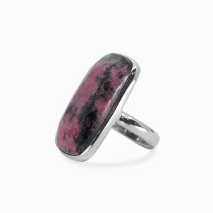 Perfectly pink with bold, black dendritic patterns, wear this Rhodonite ring any time of the day, you will always feel loved and beautiful wearing the Rhodonite ring. The “stone of love” activates and energizes the heart chakra and helps one to achieve their greatest potential. It dispels anxiety and brings its wearer an observant nature.