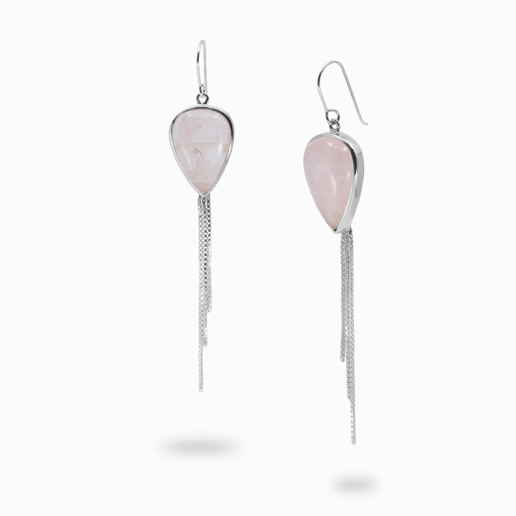 With their soft and silky pink tones, these cabochon Rose Quartz earrings are a delight to wear anytime, anywhere. Rose Quartz is a "stone of soft love" that can help you bring serenity and calm to your life and relationships. Rose Quartz is a crystal that radiates soothing and loving energy that dispels negativity and fosters self-love.