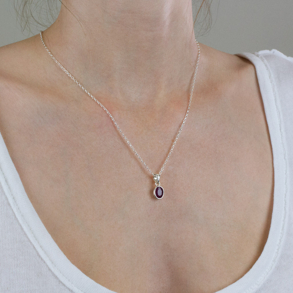 The elegance of this deep crimson Ruby Necklace is a stone that can transform your style. Splash with brights for contrast or pair with darker colors for evening glam. Known as a “stone of nobility”, this gem encourages one to follow bliss, lighting darkness in ones life and sparking light through the body and spirit conquering darkness on all levels. It is said that as long as one retains ruby, wealth will never part.