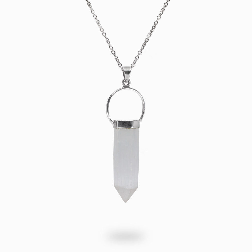 It provides for clarity of the mind and decreases reticence. It can be used to provide flexibility to one's nature and strength to one's decisions. Wear this Selenite Necklace to see the inner workings of any situation and to understand the superficial.