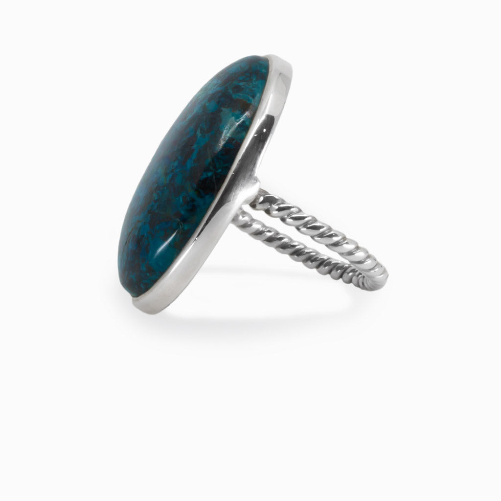 Dark Blue Textured Shattuckite Ring Made in Earth