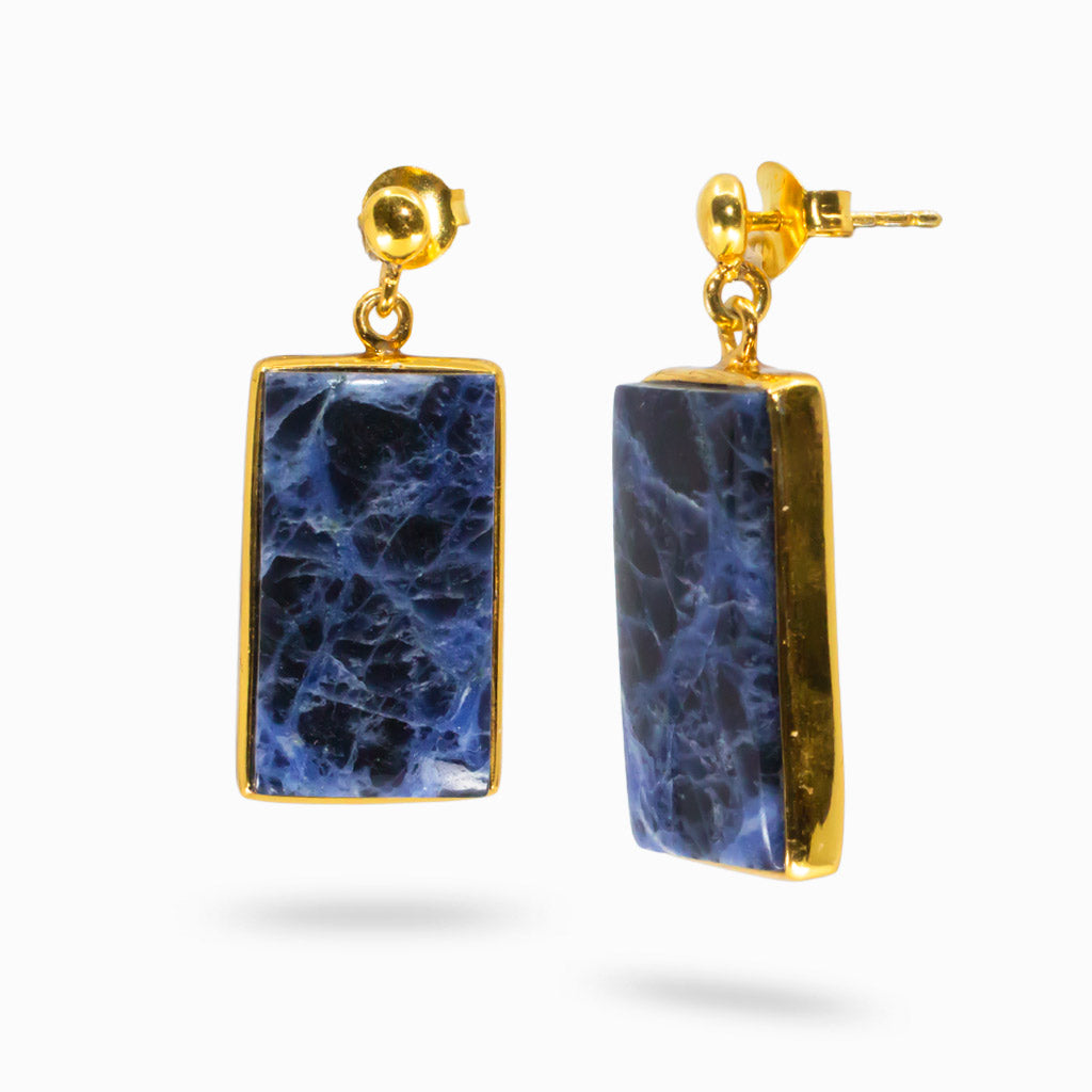 This gem's range of dark blue colors is particularly unusual, yet amazing! This deep blue gem stands out against white and bright colors while still maintaining a glam effect when paired with darker hues. These Sodalite earrings give the wearer the ability to reason and develop logical conclusions. It aids in the removal of confusion, allowing one to employ intelligence in all situations and providing a sense of purpose with a light heart. It can also be used to help people recognize and express their actual sentiments.
