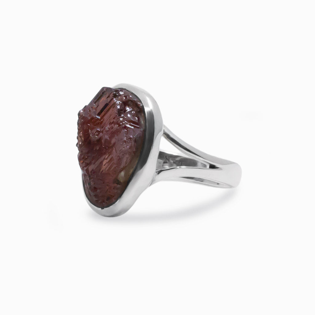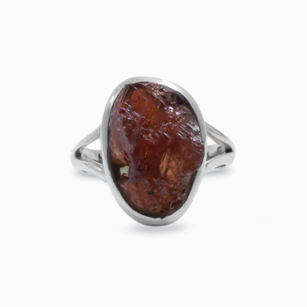 Spessartine stone is a very special and rare variety of Garnet that naturally crystallizes in fiery-red masses, including hints of orange, brown, and violet tones. Wearing this beautifully red gem will light up any day and outfit choice. Your mutual attraction to this stone gives an indication that your consciousness is ready to enhance your growth in your personal and business life. Wearing this Spessartine Garnet ring will allow you to connect with your higher consciousness, showing you the path to attain the equilibrium of balance for healthy relationships.