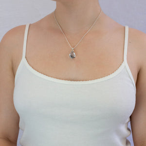An elegant clear and crisp Quartz with beautifully bold, striking bands of Black Tourmaline throughout the stone. This faceted tear Tourmalinated Quartz necklace is a monochrome dream gem that is so versatile it will work with anything from an extravagant to a minimalist style. Combining the qualities of tourmaline and quartz, wearing this stunning necklace will aid one in eliminating any destructive patterns in nature and in one's life. Allow this stone to give you strength and protection.