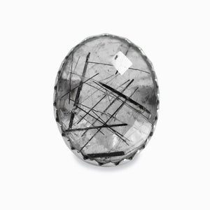 An elegant clear and crisp Quartz stone with beautifully bold, striking bands of Black Tourmaline throughout the stone. A monochrome dream gem that is so versatile it will work with anything from an extravagant to a minimalist style. Combining the qualities of tourmaline and quartz, wearing this gem aids one in eliminating any destructive patterns in nature and in one's life. Allow this Quartz ring to give you strength and protection.
